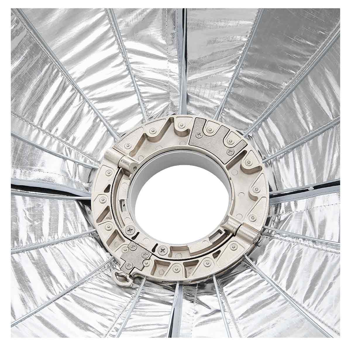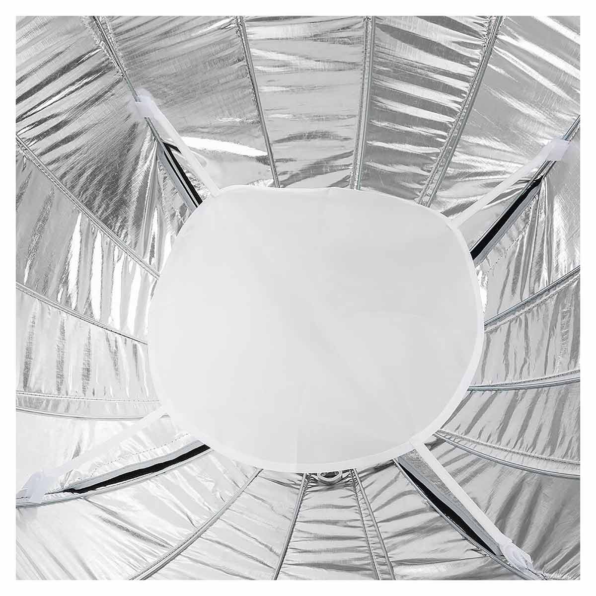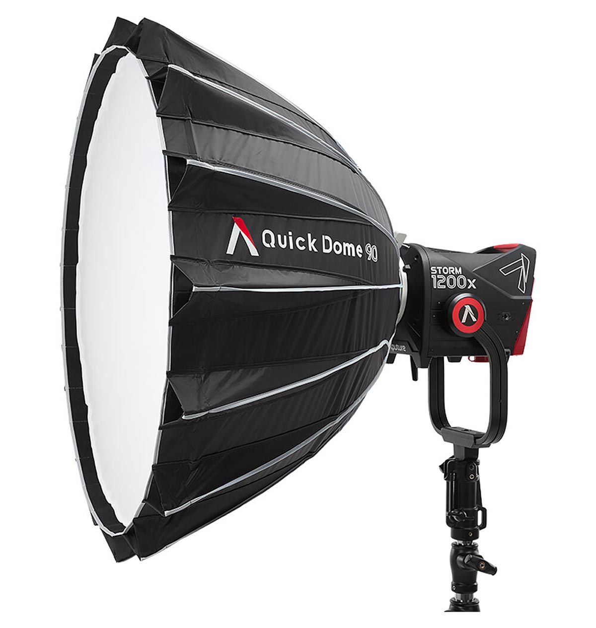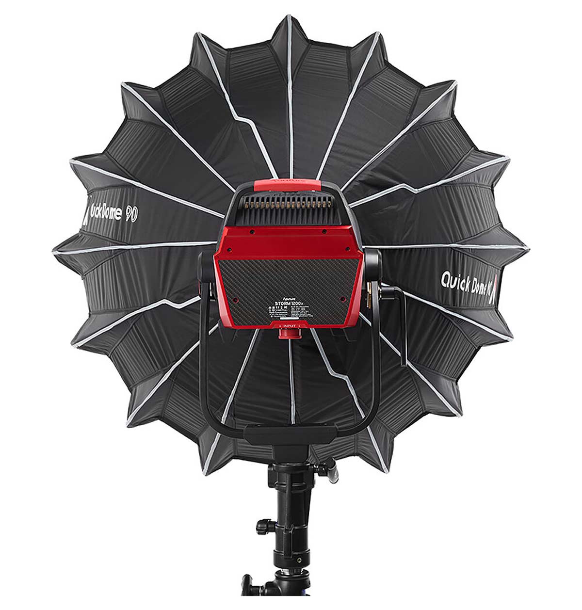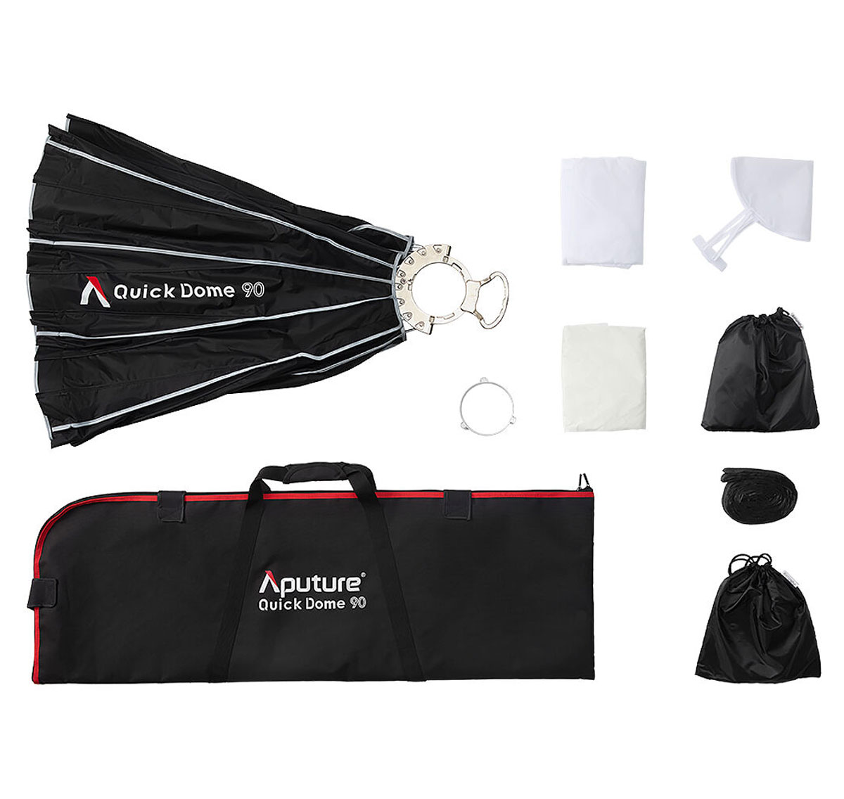 Aputure Quick Dome 90 je 90 cm Bowens‑mount softbox modifikator svetla koji pretvara direktno LED svetlo u široko, mekano i ujednačeno osvetljenje sa minimalnim neželjenim senkama zahvaljujući jednostavnom sistemu sklapanja i laganom dizajnu omogućava brzo postavljanje i prilagođavanje na setu, što ga čini pogodnim za portrete, video, produkt fotografiju i druge kreativne svetlosne aplikacije.