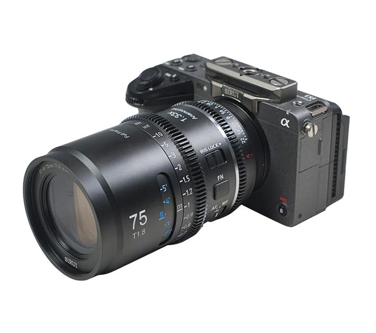 Sirui Astra T1.8 1.33× Full Frame Autofocus Anamorphic Cine Lens 75mm za Sony E mount sa blue flare efektom je profesionalni filmski objektiv koji kombinuje precizan autofokus i karakteristične plave flare efekte. Sa velikim otvorom blende T1.8 i anamorfnom kompresijom 1.33×, pruža širok, kinematografski izgled i bogat vizuelni still. Idealan za filmsku produkciju, video snimanje i kreativne projekte.