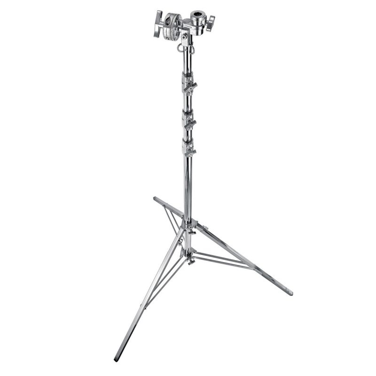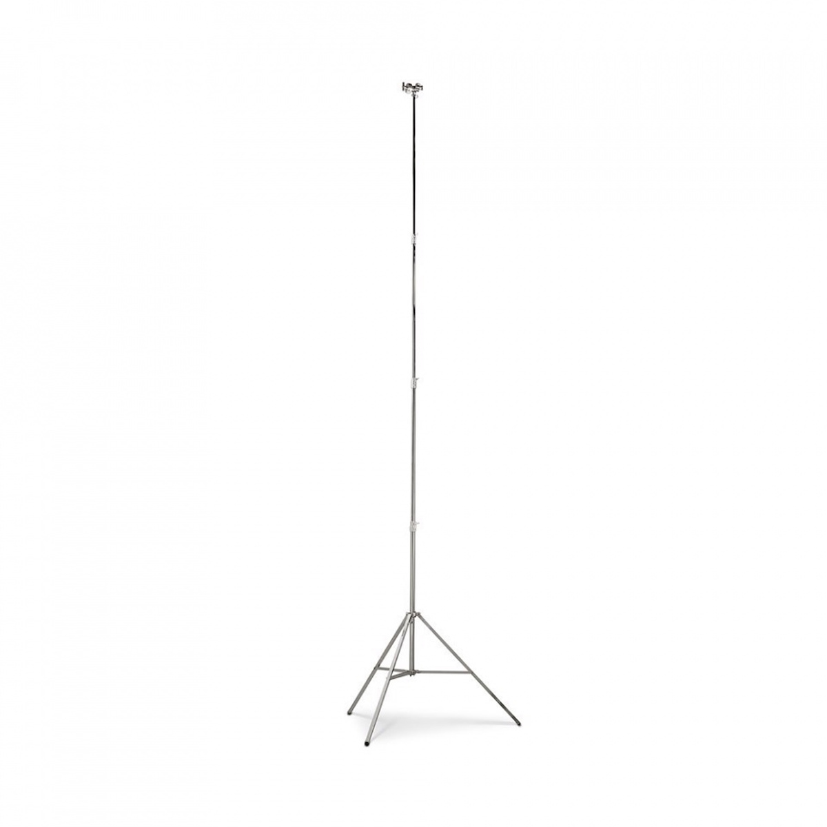 Avenger A3065CS Overhead Stand je profesionalni overhead (iznad glave) studio stativ izrađen od kromiranog čelika, dizajniran za stabilno držanje cevi, prečki, rama i modularnih okvira u foto i video studijima. Ovaj model je jedan od najviših u Avenger seriji, sa maksimalnom visinom do 640cm širokom bazom za dodatnu stabilnost i ugrađenim Grip-Head držačem sa junior prijemnikom (28 mm / 1 1/8″). Statív ima 5 sekcija i 4 podizača i nosivost do 30 kg pri punom izvučenju, što ga čini odličnim izborom za overhead rasvetu i težu opremu u većim studijskim postavkama.