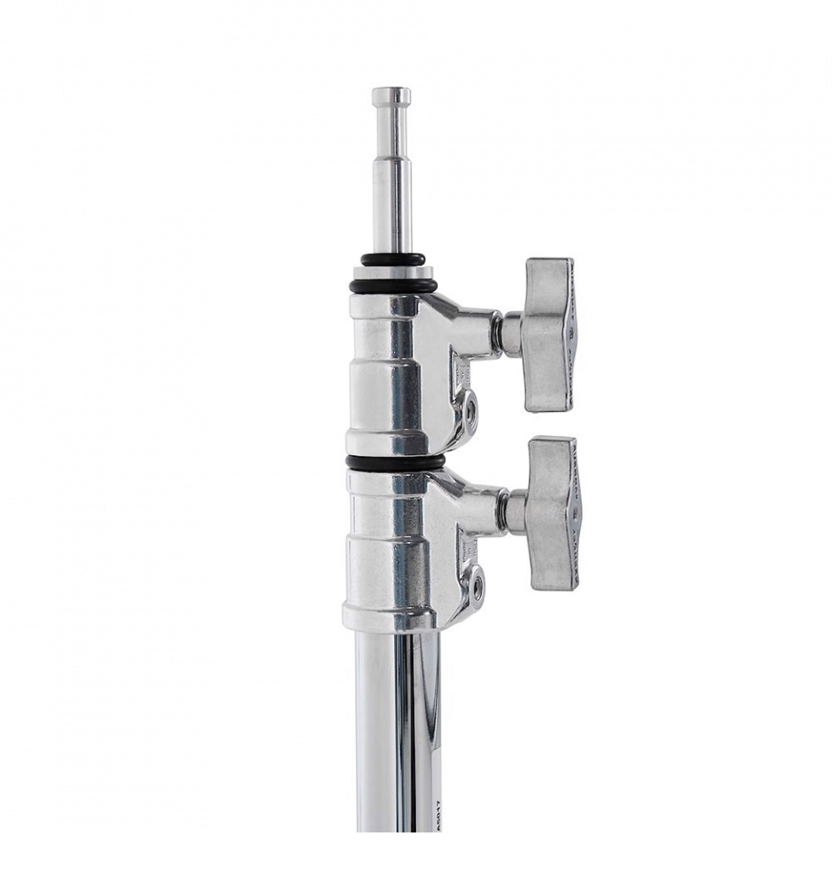 Avenger A5017 Roller Stand (Roller 17 Folding Base) je lagani studio stalak sa točkićima i sklopivom bazom, idealan za rasvetnu opremu, grip‑glave ili druge studijske dodatke. Opremljen je točkićima sa kočnicama i sklopivom bazom što omogućava lako pomeranje po setu i stabilnost u radu. Sa 3 sekcije i 2 podizača, može da se podešava od oko 100 cm do maksimalno oko 270 cm visine, uz nosivost do 13,6 kg. Standardni gornji priključak je 16 mm (5/8″) pin, kompatibilan sa većinom svetlosnih i grip dodataka.