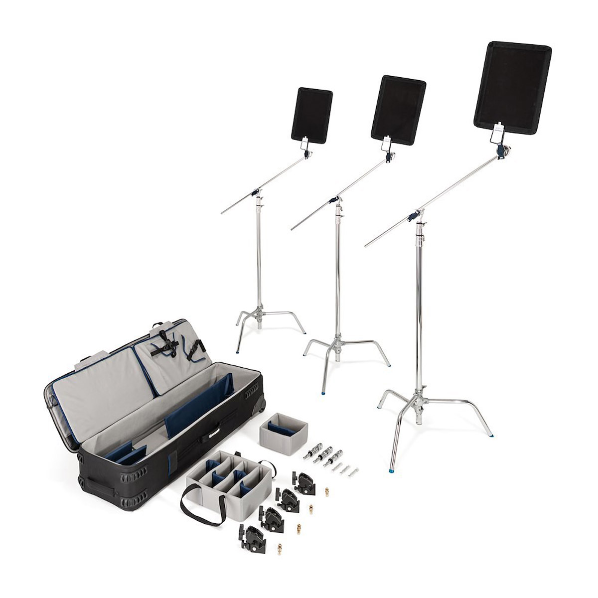 Avenger Triple C transportna torba sa točkićima (AVCSA1301B) je profesionalna transportna torba dizajnirana za sigurno skladištenje i lako prenošenje odvojivih C-stativa i grip dodataka. Torba može da primi do tri kompletna C-stand stativa, a zahvaljujući ugrađenim točkićima i čvrstim ručkama omogućava jednostavan transport na setu i između lokacija. Izrađena je od izdržljivih materijala, sa ojačanim šavovima i rajsferšlusima, što je čini idealnim rešenjem za filmske ekipe, foto studije i terensku produkciju gde je zaštita i organizacija opreme ključna.