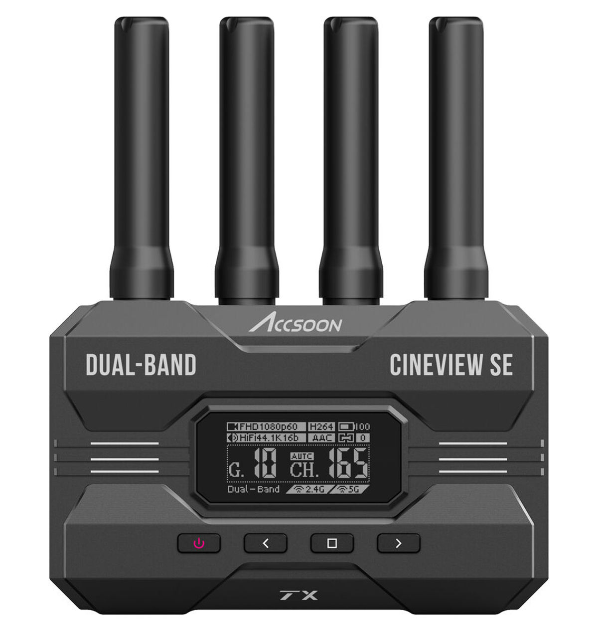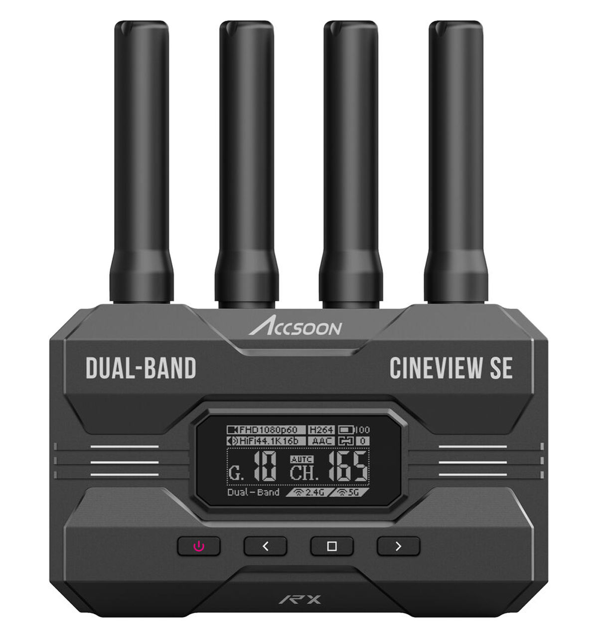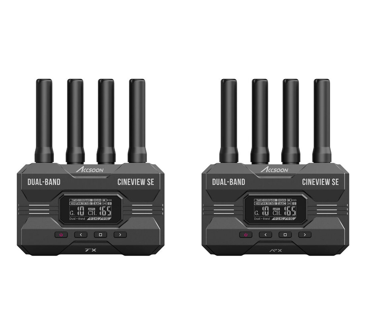 Accsoon CineView SE je profesionalni bežični video transmitter i receiver dizajniran za filmsku i video produkciju. Omogućava stabilan prenos Full HD signala (1080p60) preko dual-band 2.4 GHz i 5 GHz veze sa ultra-niskom latencijom, što omogućava real‑time monitoring bez primetnog kašnjenja.