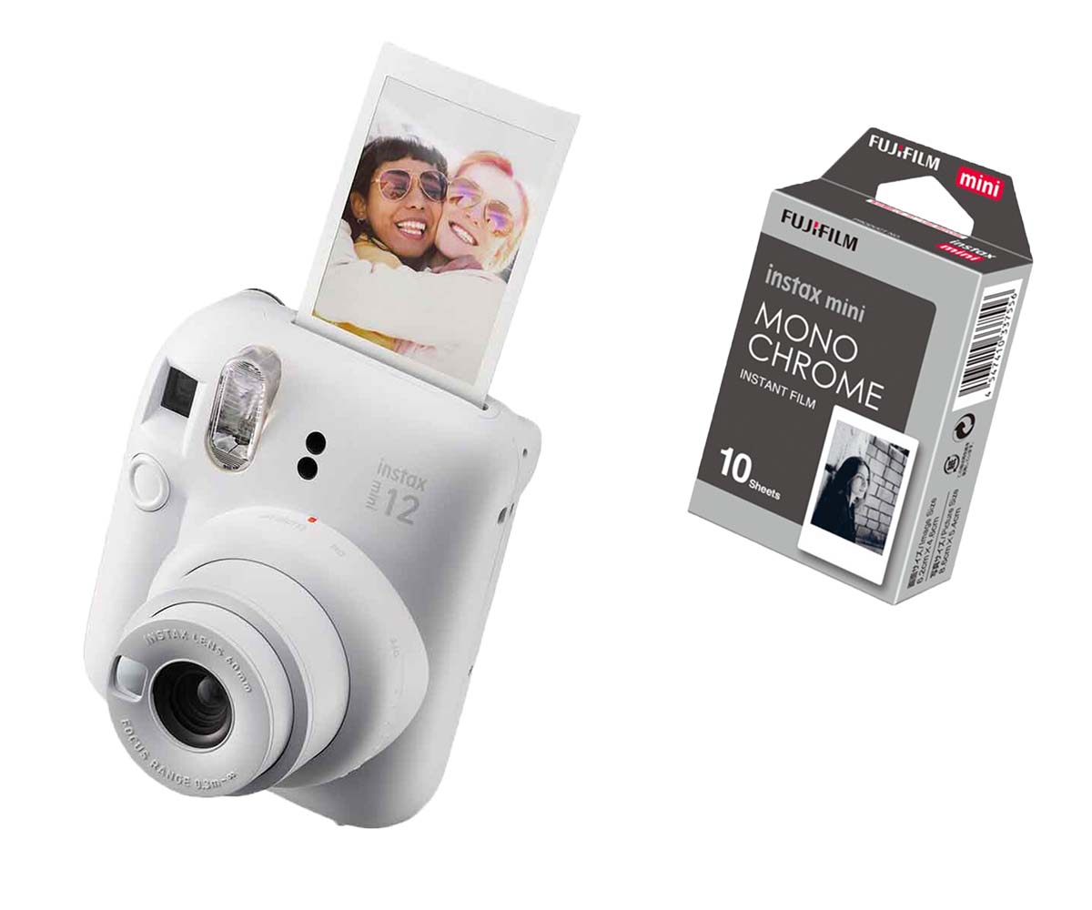 FUJIFILM INSTAX MINI 12 Instant Film Camera (CLAY WHITE) + INSTAX Mini Monochrome Film