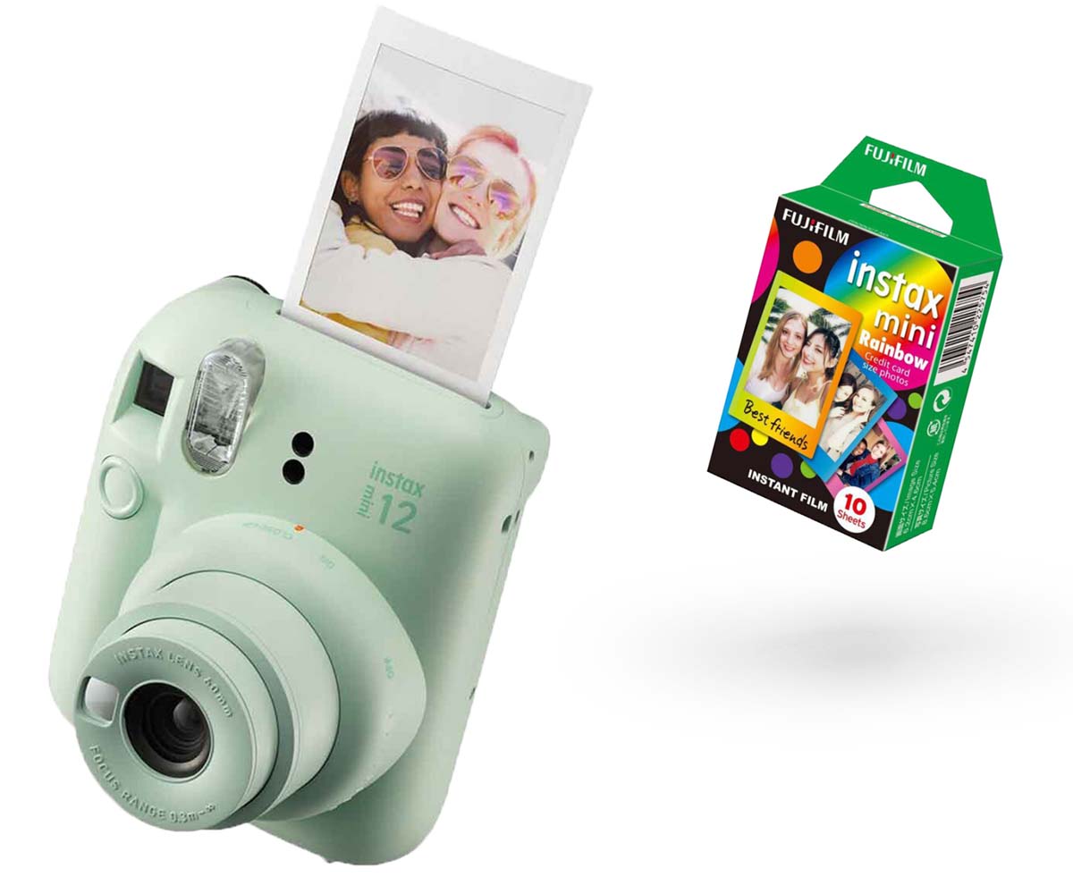FUJIFILM INSTAX MINI 12 Instant Film Camera (MINT GREEN) + Rainbow Film