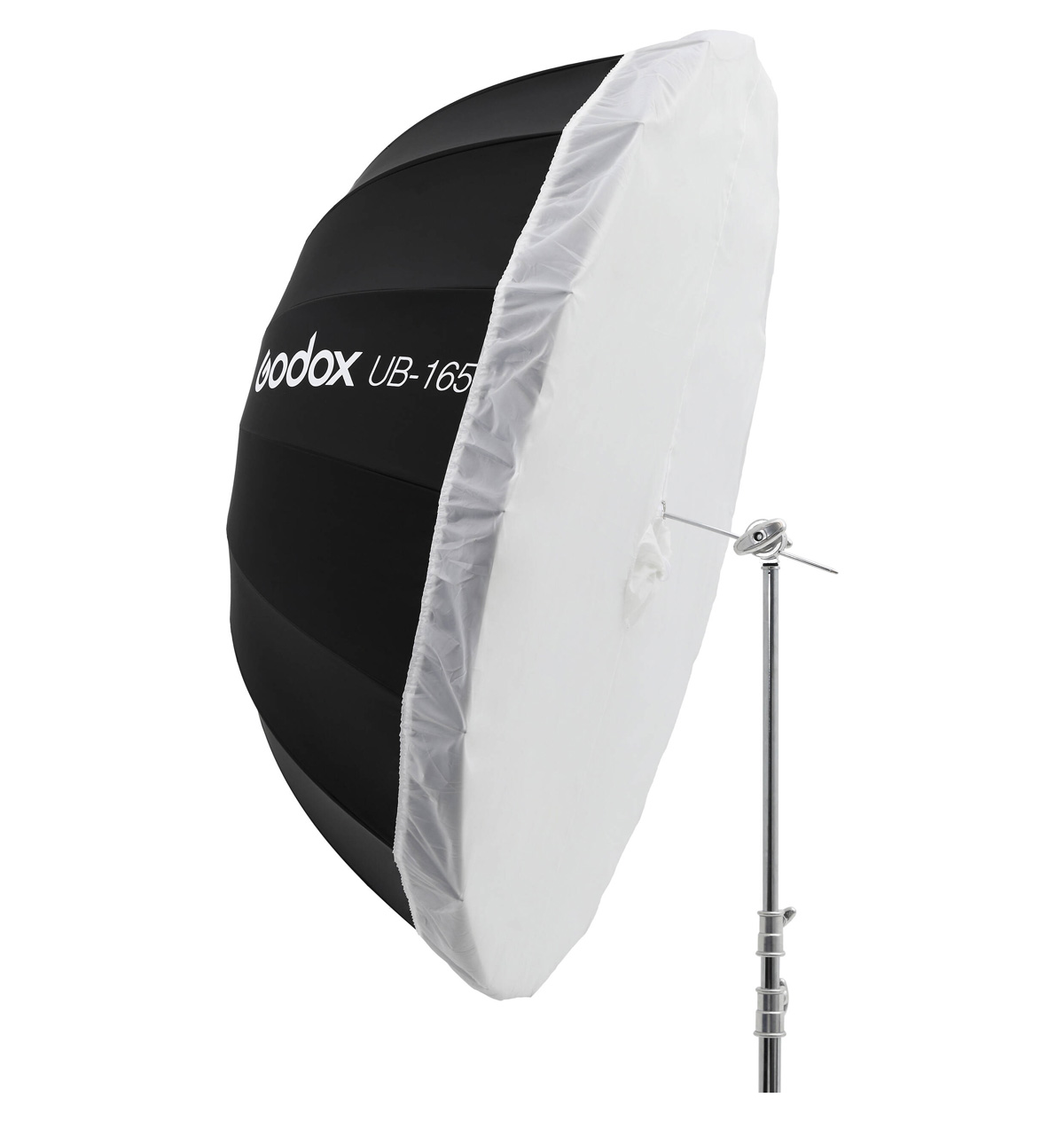 Godox UB-165W White Parabolic Umbrella je kišobran bele unutrašnjosti i velikog prečnika od 165 cm. Domet mu je odličan. Reflektovana svetlost će uspešno stići i na veće udaljenosti, a njegova bela unutrašnjost će reflektovati difuznu svetlost i umanjiti kontrast, te će Vam ovaj kišobran poslužiti kao odlično fill light rešenje.