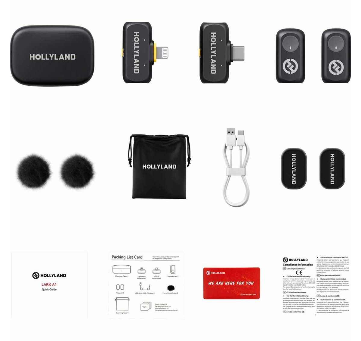 Hollyland LARK A1 Combo je praktičan digitalni bežični mikrofonski set za dva govornika, koji se jednostavno povezuje sa mobilnim uređajima putem USB-C ili Lightning priključaka. Opremljen je 48 kHz / 24-bit HD zvukom i može podneti snagu zvuka do 120 dB SPL bez izobličenja. Tri nivoa inteligentnog poništavanja buke (noise cancellation), EQ i reverb prilagodbe, automatska kontrola jačine (auto-limit) i punjivo kućište koje omogućava do 54 sata rada — čine ga odličnim za intervju, vlogging i live stream.