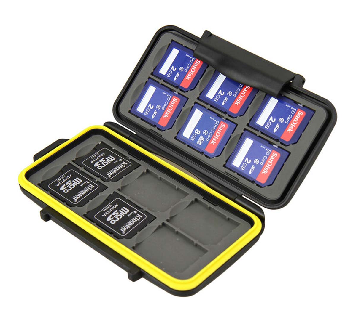 JJC MC‑SD12 je praktična i kompaktna kutija za SD memorijske kartice koja omogućava sigurno čuvanje i organizaciju do 12 kartica. Otporno kućište štiti kartice od prašine, udaraca i vlage, idealno za fotografe i snimatelje u pokretu.