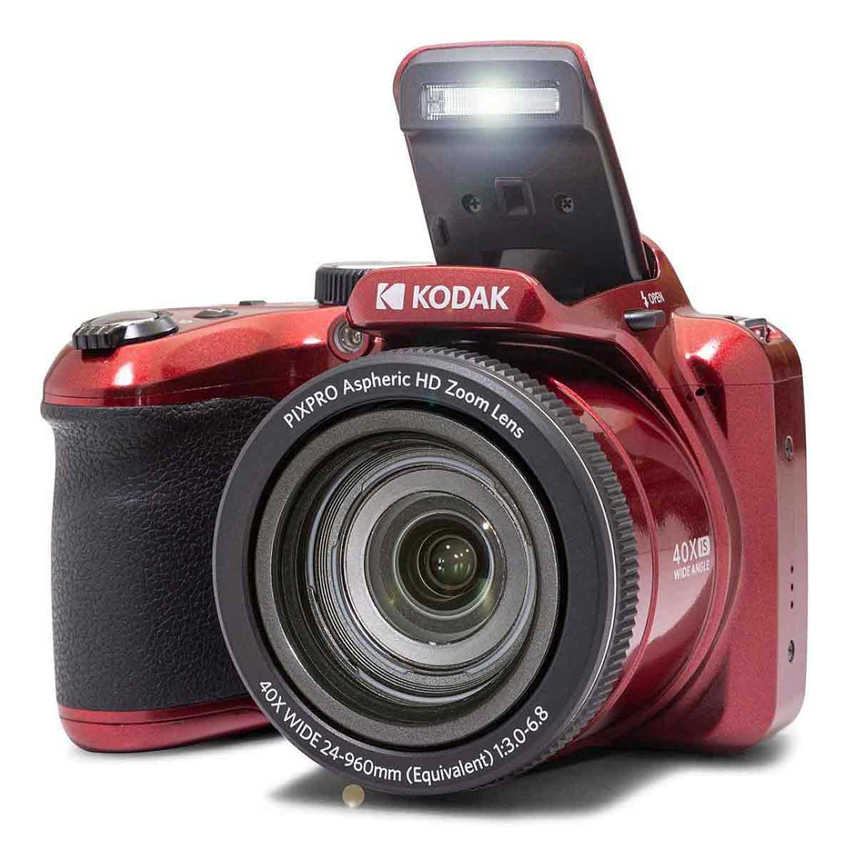 Kodak PIXPRO AZ405 (Red) je kompaktna super-zoom digitalna kamera sa b× optičkim zumom, pružajući ekvivalent raspona od 24 do 960 mm za široke pejzaže i uklonjene subjekte. Senzor od 20,68 megapiksela (1/2,3" CCD) omogućava snimanje detaljnih fotografija i HD video zapisa. Optička stabilizacija slike pomaže u smanjenju zamućenja prilikom snimanja iz ruke, posebno na velikim zumovima. Kamera ima 3,0-inčni LCD ekran sa 460.000 tačaka za pregled kadrova i navigaciju kroz meni. Za napajanje koristi četiri AA baterije, koje obično omogućavaju oko 280 snimaka po setu. Kodak PIXPRO AZ405 podržava ISO osetljivosti od 80 do 1600 (uz mogućnost proširenja do 3200 za 4MP snimke) za rad u različitim uslovima osvetljenja.