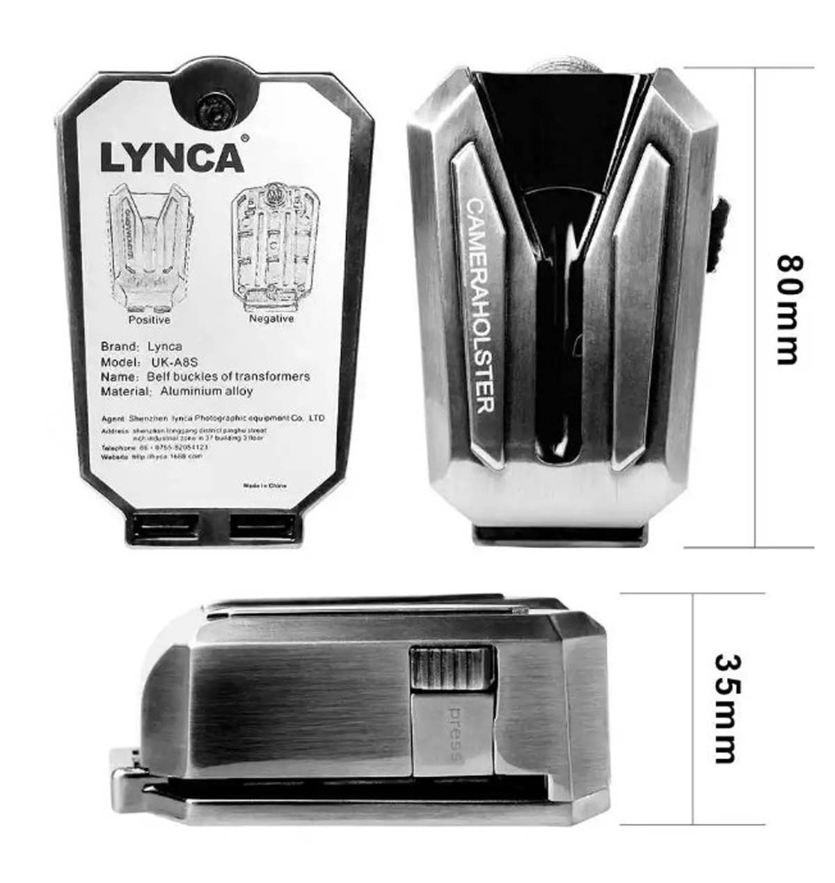Lynca UK-A8S je čvrst metalni nosač za nošenje kamere oko struka, omogućava sigurno kačenje i brz pristup fotoaparatu. Idealno rešenje za fotografe koji žele stabilnost, praktičnost i slobodu kretanja tokom snimanja.