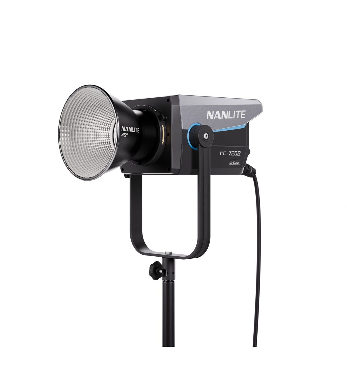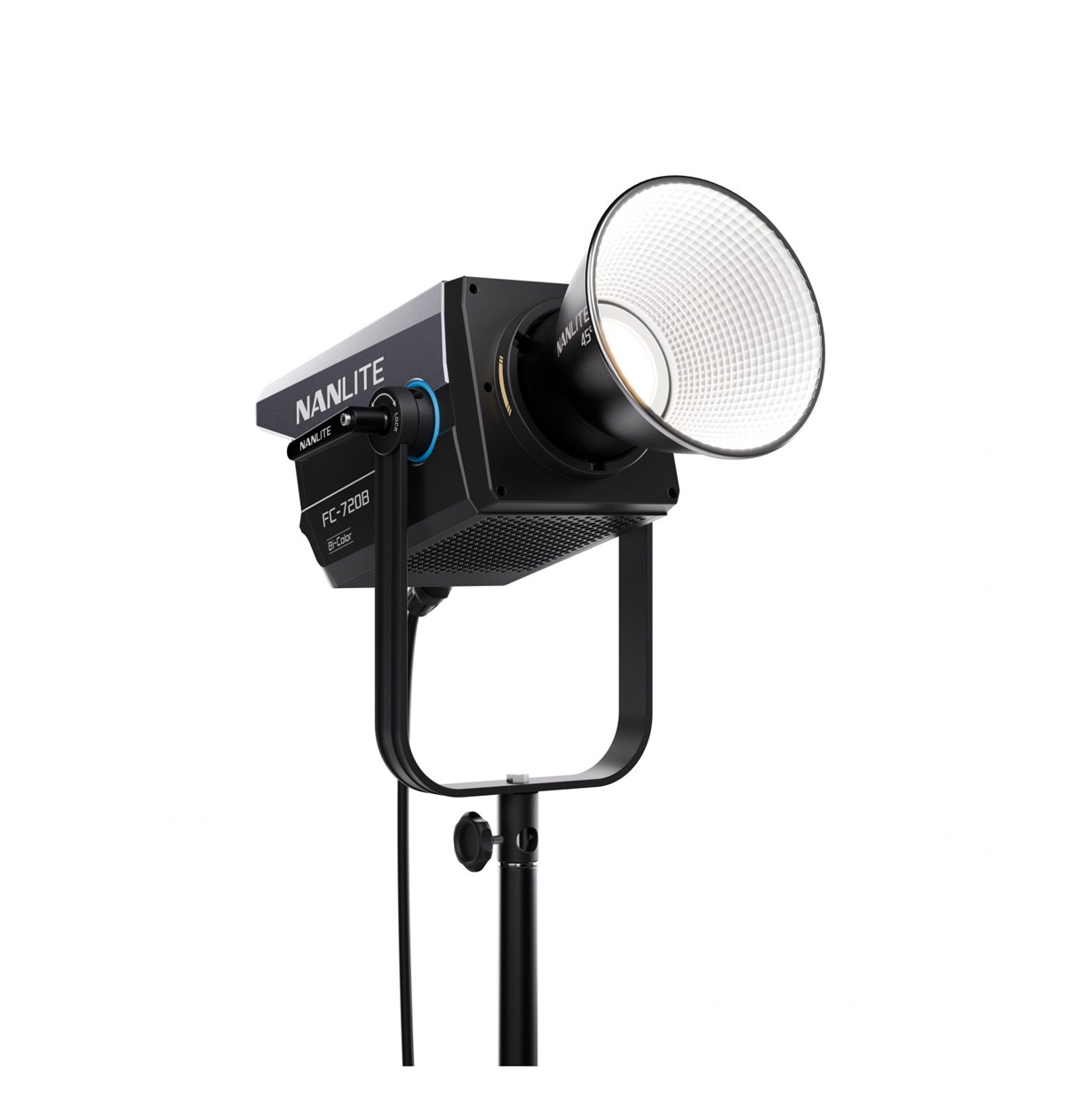 Nanlite FC‑720B Bi‑Color LED Spotlight je profesionalno bi‑color COB LED svetlo namenjeno filmskoj, televizijskoj i studijskoj produkciji. Pruža veoma jak i stabilan svetlosni izlaz uz mogućnost podešavanja temperature boje u širokom opsegu 2700 K – 6500 K, što omogućava precizno usklađivanje sa ambijentalnim svetlom ili drugim izvorima. Sa visokim CRI/TLCI vrednostima odlične reprodukcije boja, preciznim 0–100 % dimovanjem, podrškom za DMX, Bluetooth/Nanlink aplikaciju i kompatibilnošću sa Bowens‑mount modifikatorima, ovo svetlo omogućava fleksibilnu kontrolu svetlosnih efekata i profesionalnu upotrebu u raznim scenarijima snimanja, od portreta i intervjua do kompleksnih filmskih setova. Kućište je čvrsto metalno, a u kompletu dolaze reflektor, napajanje, kablovi i torba za transport.