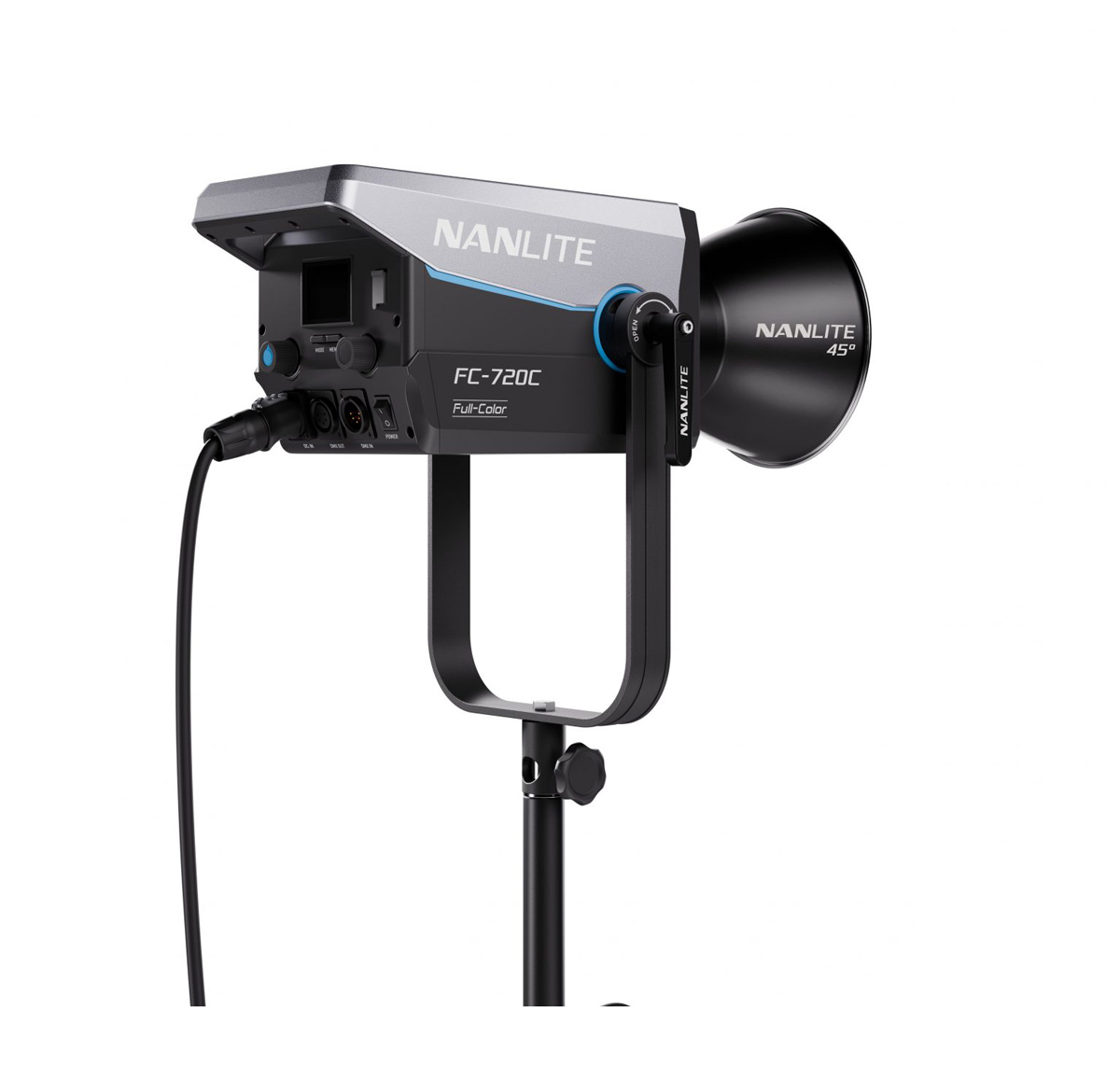 Nanlite FC-720C LED RGBW Spotlight je 750 W profesionalno LED svetlo sa punim RGBW i bi-color opsegom boja (2400 K – 12 000 K) i ±150 pomakom zeleno/magenta, koje pruža snažnu i preciznu svetlosnu kontrolu sa pet različitih režima osvetljenja (CCT, HSI, RGBW, Gel i Effect), uključuje 460 gel presetova i 15 ugrađenih efekata, omogućava glatko dimovanje u koracima od 0,1 %, nudi on-board upravljanje, Bluetooth kontrolu putem Nanlink aplikacije, DMX/RDM i NFC parovanje, ima Bowens mount za širok izbor modifikatora i 360° rotirajuću yoke držačku konstrukciju, a sve to ga čini idealnim izborom za filmsku, TV i studijsku rasvetu gde je potrebna visoka reprodukcija boja, snažan izlaz i fleksibilna kreativna kontrola svetla.