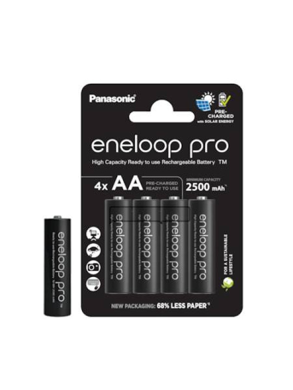 Panasonic Eneloop Ni-Mh baterije, blister od 4 komada AA Ni-Mh baterije 1.2V i 2500mAh. U pitanju su trenutno najkvalitetnije baterije na svetu. Odgovaraju za sve uređaje koji koriste AA baterije.
