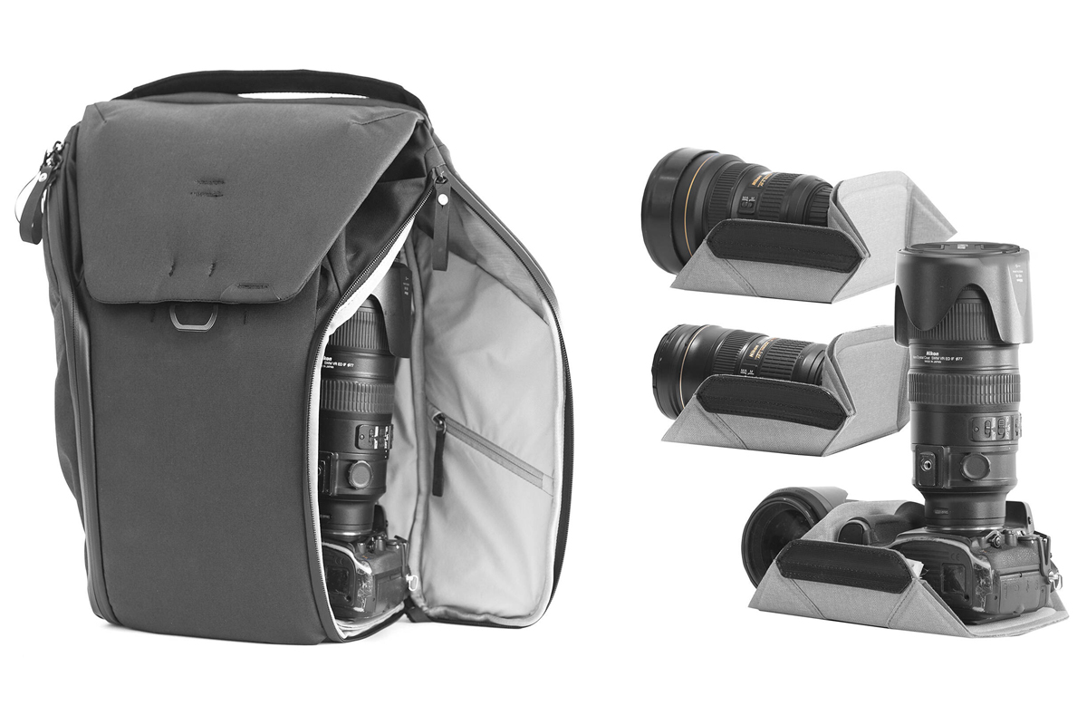 Unutrašnjost torbe ima džep sa rajsferšlusom i posebne pregrade za tablet od 12,9", laptop od 15", punjače i kablove. U džepovima sa bočnog otvora možete organizovati baterije, memorijske kartice i sitnu elektroniku. Spolja na svakom bočnom otvoru nalazi se veliki otvoreni džep za flašu vode, stativ ili kišobran, sa spoljnim trakama i petljama za opremu. Duge spoljne trake i dodatne petlje omogućavaju pričvršćivanje opreme ili garderobe na prednju ili donju stranu torbe.