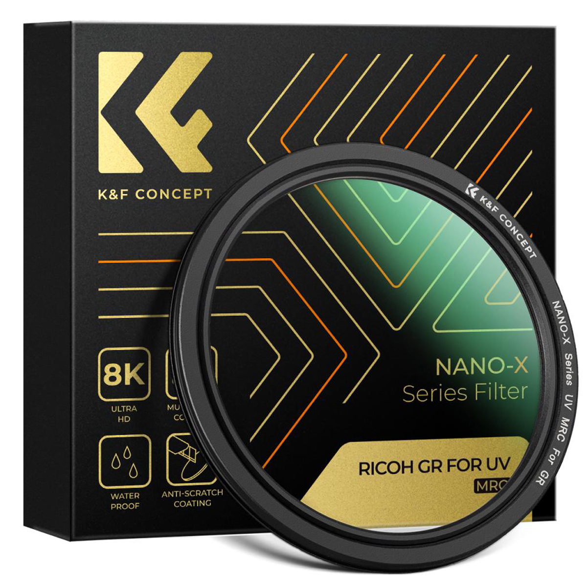 Kompatibilan sa Ricoh GR IIIx, GR IIIx HDF, GR III, GR III HDF i GR II kamerama. Blokira UV zrake i smanjuje plavičasti odsjaj, poboljšavajući kvalitet boja. Štiti objektiv od prašine, ogrebotina i otisaka. Napravljen od optičkog stakla sa 28 slojeva premaza – otporan na vodu, ulje i ogrebotine. Prenosi 99.6% svetla, a ultra tanak aluminijumski ram (1.8 mm) sprečava senčenje. Lako se postavlja pomoću lepljive podloge i omogućava dodavanje drugih filtera iste veličine.