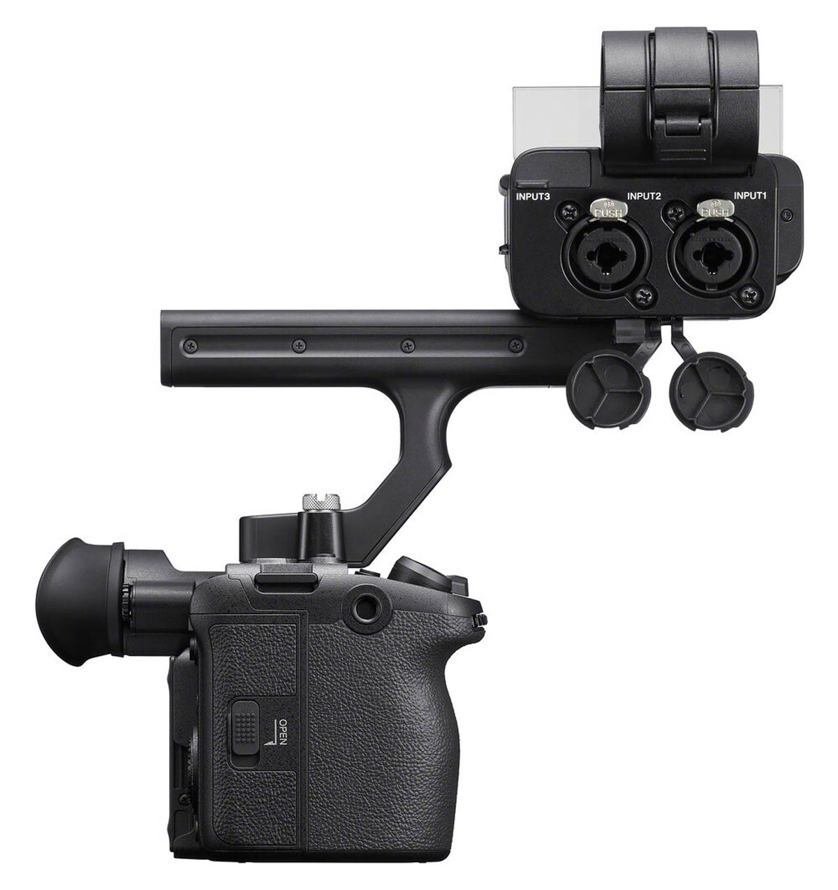 XLR‑ručka (XLR‑H1 Handle Unit) donosi dva XLR/TRS ulaza i 3.5 mm mikro‑ulaz za profesionalne mikrofone i audio konfiguracije, uz ergonomsku kontrolu i dodatne montažne tačke za opremu.
